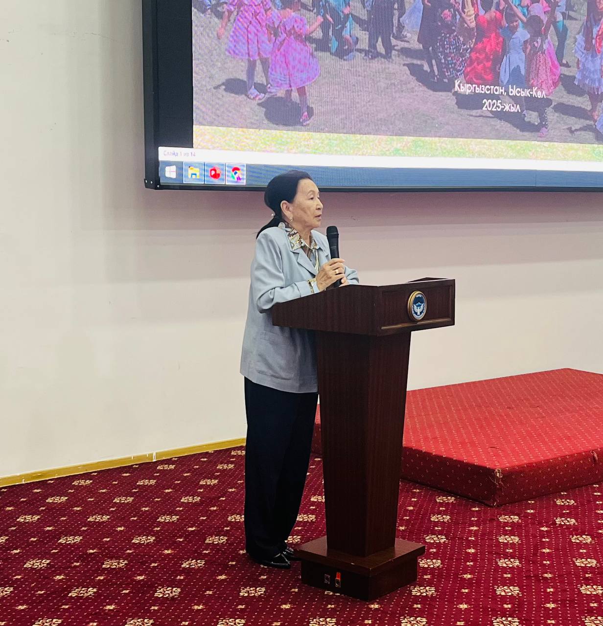 Шербаева Жыпара, кандидат педагогических наук (Ошский государственный педагогический университет), выступила с докладом о значении искусства и креативности в педагогическом процессе и развитии профессиональных компетенций учителей.