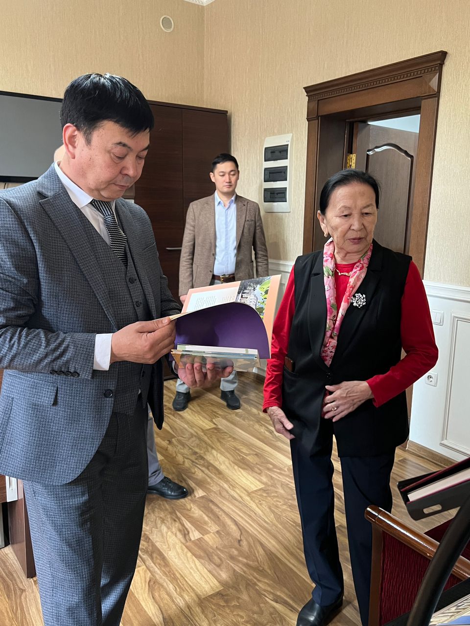 В церемонии передачи книг приняли участие представитель Министерства культуры, информации и молодежной политики КР, директор Национальной библиотеки им. А. Осмонова Элдар Эртабылдиевич Аттокуров, заместитель директора Государственной книжной палаты КР Айбек Иманалиев, а также исполнительный директор Фонда Роза Жазыбаевна Кайыкова.
