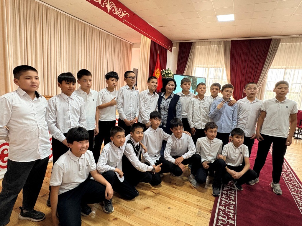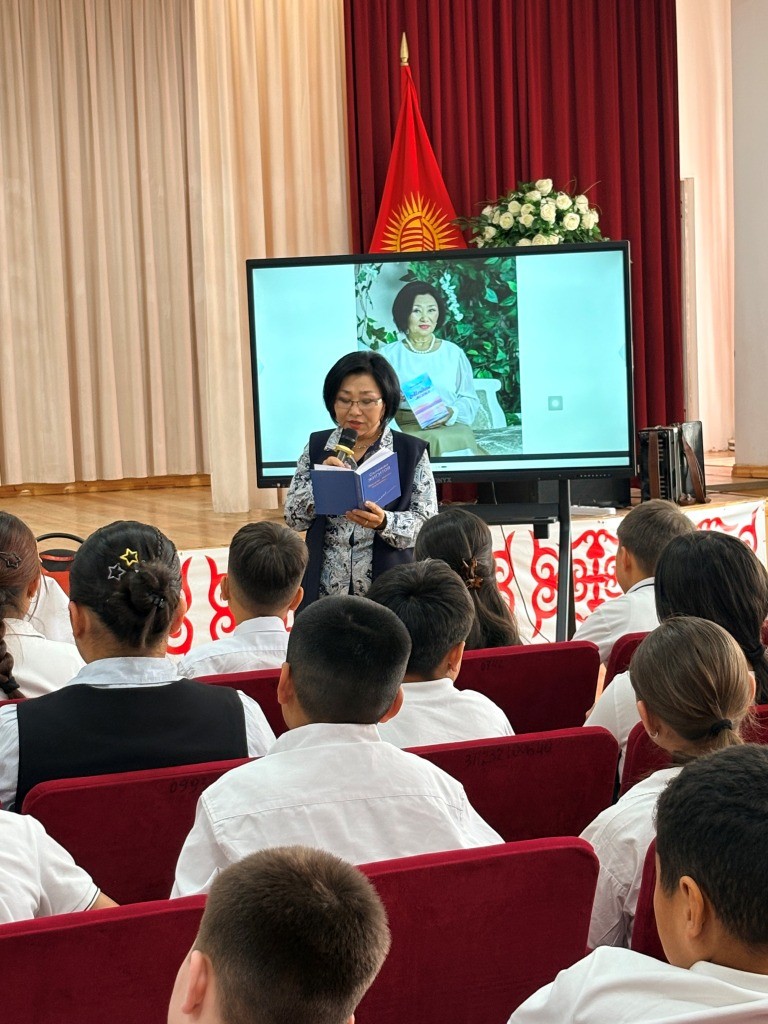 Бишкек шаарындагы №40 мектепте “Жылдыздар балдарга китеп окуйт” акциясынын алкагында акын, журналист Бурулкан Сарыгулова окуучулар менен жолугушту