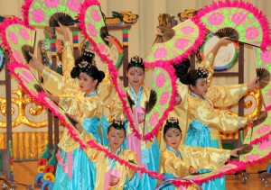 Участники концертной программы подарили публике традиционные корейские танцевальные композиции "Пучхэчхум" (танец с веерами, на которых нарисован цветок пиона), "Кангансулэ" (старинный ритуальный танец, исполняемый женской группой и знаменующий смену сезонов, включен в Список ЮНЕСКО), "Сальпхури" (древний танец очищения духа, где сохранились традиции шаманизма). А затем самодеятельные артисты исполнили "Ариран" — самую главную и известную песню, отражающую дух и эмоциональные переживания корейского народа.