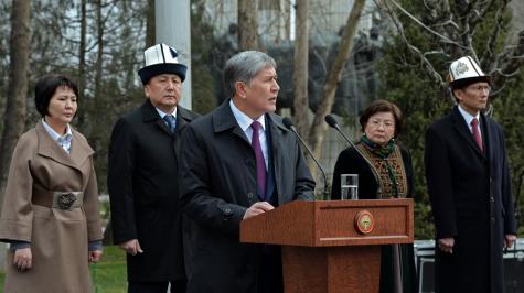 Президент Алмазбек Атамбаев: «7-апрель күнү эл чындык үчүн, адилеттүүлүк үчүн майданга чыккан! Кул болбойбуз деп чыккан! Кайрадан Кокон хандыгын курдурбайбыз деп чыккан! Тизелеп жашаганча, тик туруп өлөбүз деп чыккан!»