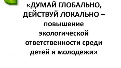 Проект «ДУМАЙ ГЛОБАЛЬНО - ДЕЙСТВУЙ ЛОКАЛЬНО: повышение экологической ответственности среди детей и молодежи»