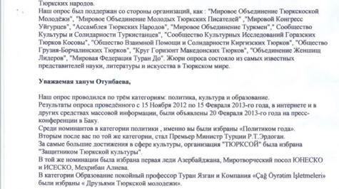 Экс-президент Кыргызстана Роза Отунбаева названа "Политиком Года" в Азербайджане