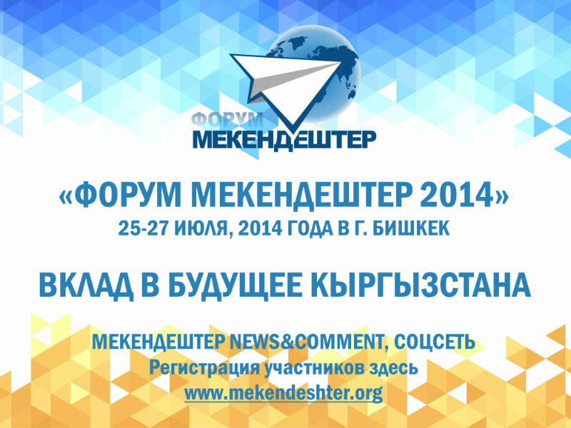 Завтра, 23 июля, в 11.00 в пресс-центре "ВБ" состоится пресс-конференция, посвященная предстоящему форуму "Мекендештер", который состоится 25-27 июля в Бишкеке.